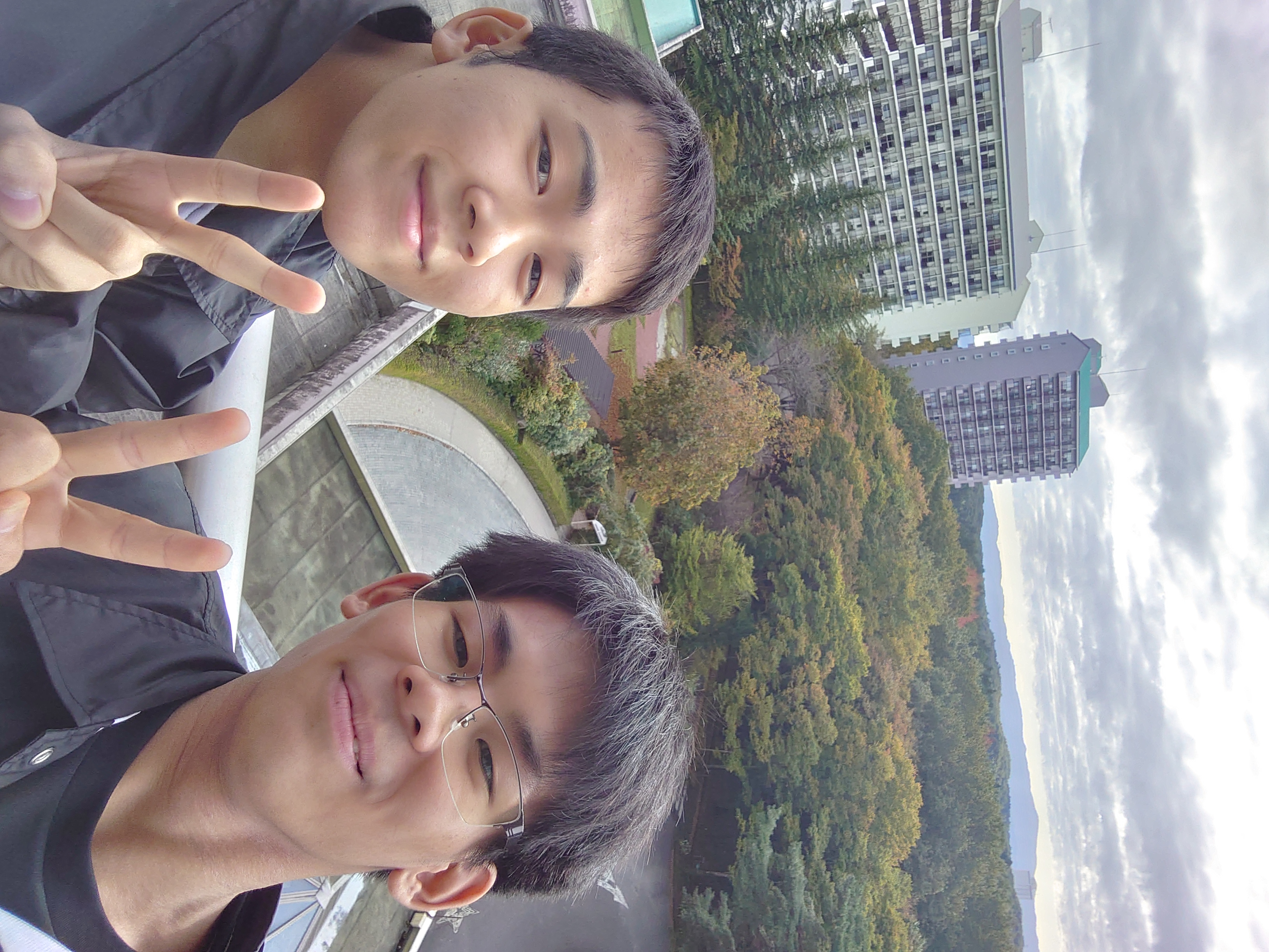 伸ばしつづけていた前髪を キッチンの丸机の上にある