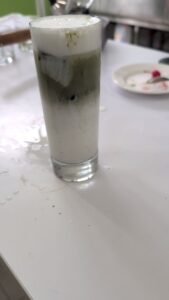 ・飲食科の授業で抹茶ラテを作った。思ったよりも作り方が簡単だった。
